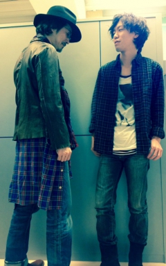 山田先生→チェックのシャツをスカートに!