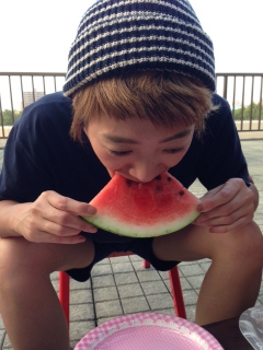 大好きなスイカをほお張る私・・・。
