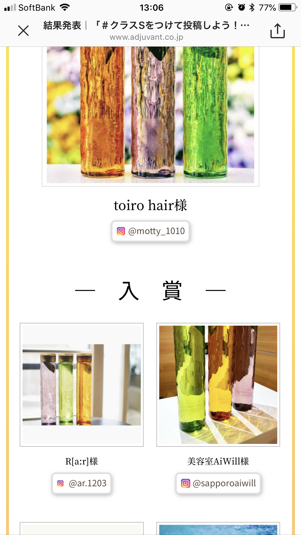 アジュバンの写真コンテストで賞をいただきました☆